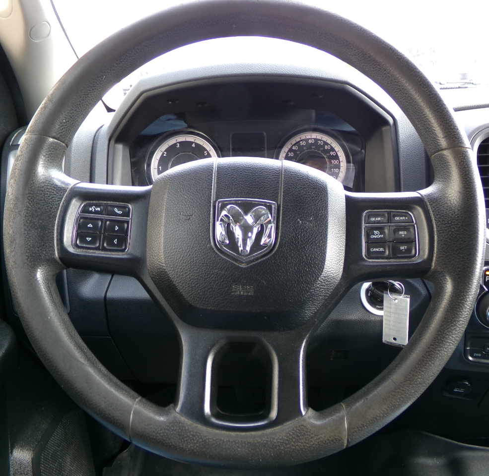 2018 Ram 1500 Quad Cab Express 4x4, built with a bold stance and commanding road presence. This truck features power windows, locks, and mirrors for everyday ease, along with Bluetooth for hands-free calls and music streaming. The backup camera adds extra confidence when reversing, and cruise control helps smooth out highway drives. Its muscular design pairs with practical features, while the AM/FM radio keeps your favorite stations close. A tough, capable pickup that’s ready for whatever lies ahead.